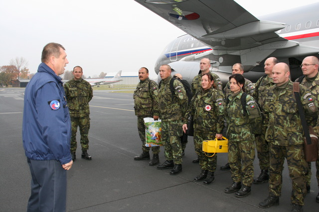 Zástupce ředitele SOC MO generál Kankia vítá příslušníky ÚU AČR KFOR zpět v České republice