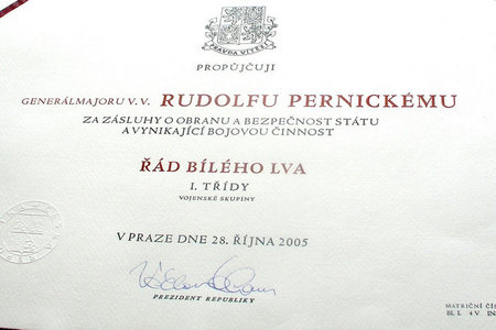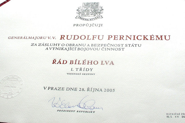 Rudolf Pernický obdržel v roce 2005 od prezidenta České republiky Řád Bílého lva I. stupně.