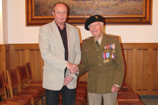 Emilu Kočnarovi k jeho 95. narozeninám blahopřál klatovský starosta Rudolf Salvetr,