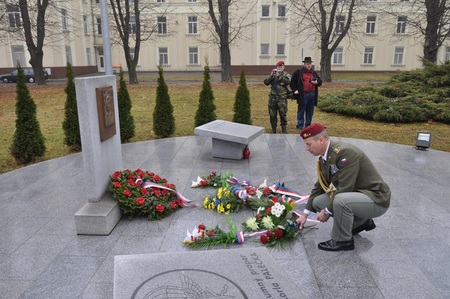 Pplk. v.v. Jindřich Starý pokládá květiny k pietnímu místu