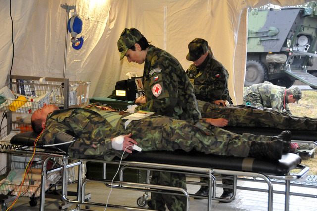 MEDEVAC zasahuje - v polní nemocnici ROLE 2 byla "zraněným", kteří byli reálně namaskováni, poskytnuta odborná pomoc
