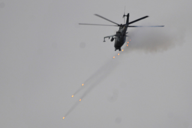 Bitevník vrtulník v akci - střelbou umlčoval povstalce, kteří kladli tuhý odpor