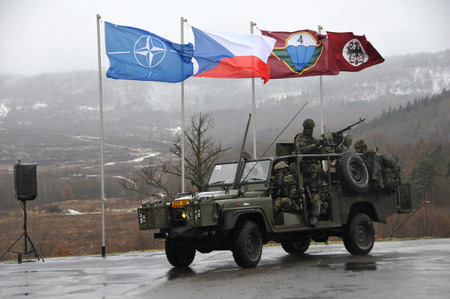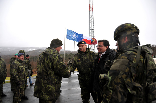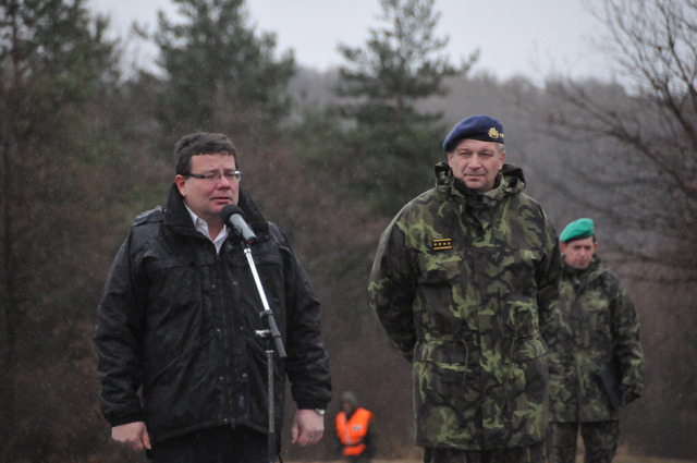 Velitel společných sil generál Hynek Blaško přivítal na cvičení ministra Alexandra Vondru a náčelníka GŠ AČR generála Vlastimila Picka