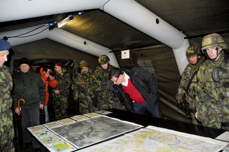 Ministr obrany Alexandr Vondra si s náčelníkem Generálního štábu AČR generálem Vlastimilem Pickem a dalšími hosty prohlédl velitelské pracoviště 9. provinčního rekonstrukčního týmu