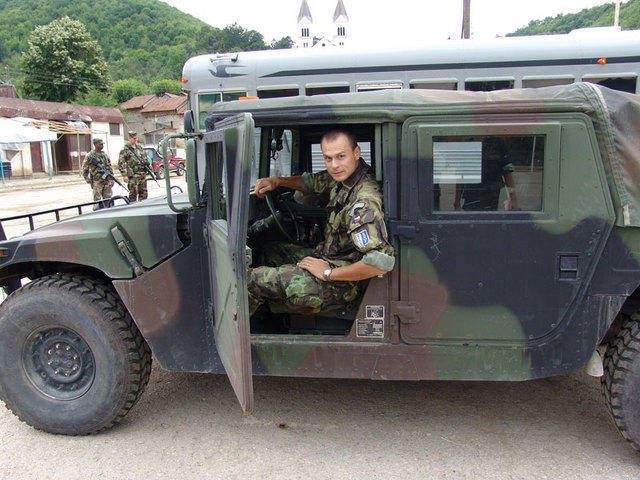 Praporčík Jan Mudruňka se naučil ovládat i vozidlo americké armády Humvee Hummer