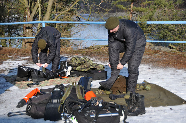 Nástup potápěčů před zahájením zaměstnání na hrázi opatovické vodní nádrže (2)