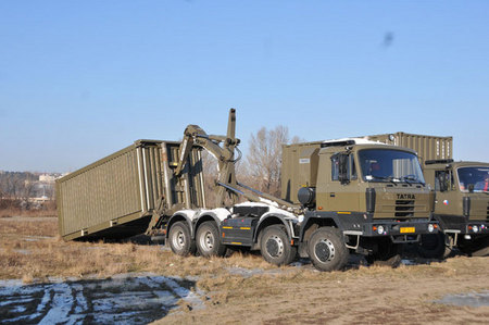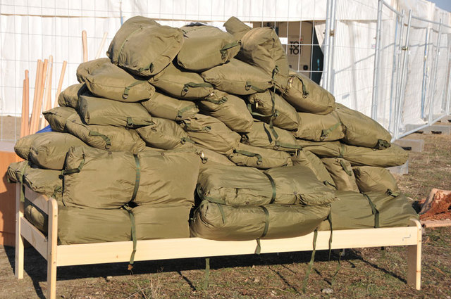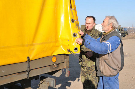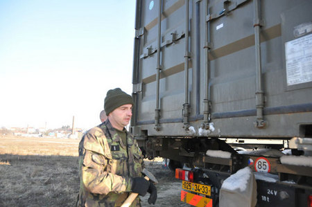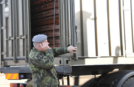 V popředí řidič o.z. Petr Hindi a četař Vlastimil Bláha přivezli spacáky