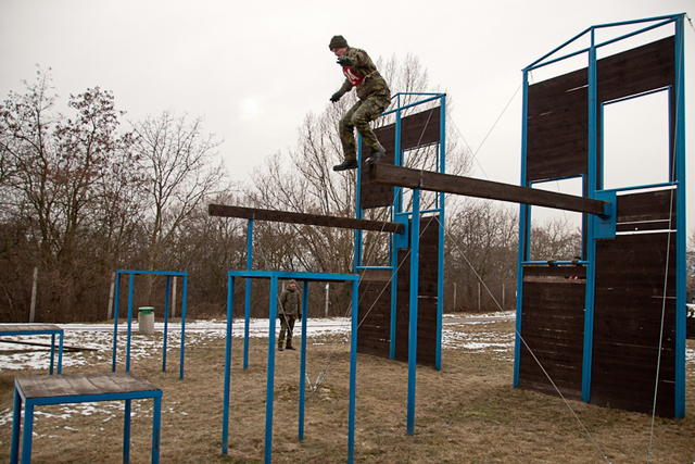 Překážkovou dráhu museli vojáci zvládnout i v družstvu a s kládou