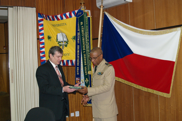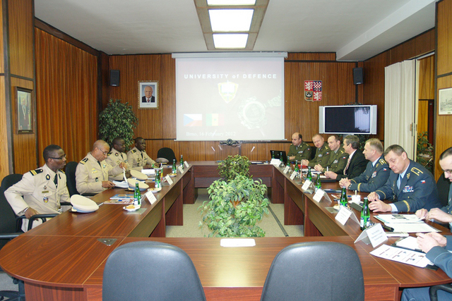 Delegaci ze Senegalu v čele s náčelníkem štábu vzdušných sil Senegalu plukovníkem Alainem J.C. Perierem v doprovodu náčelníka GŠ AČR armádního generála Vlastimila Picka na Univerzitě obrany přivítal její rektor profesor Rudolf Urban