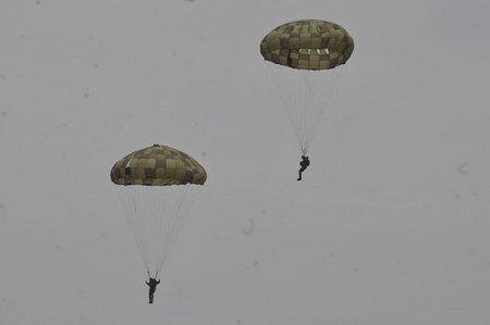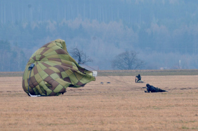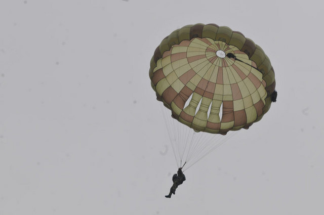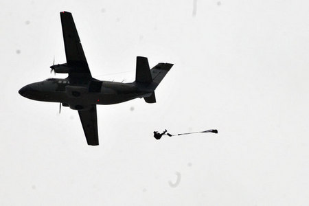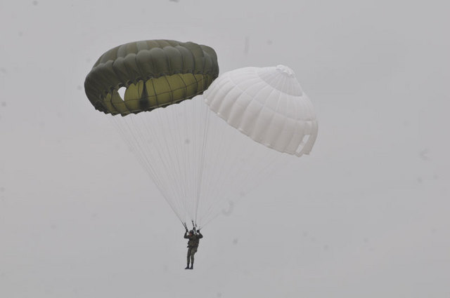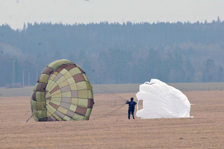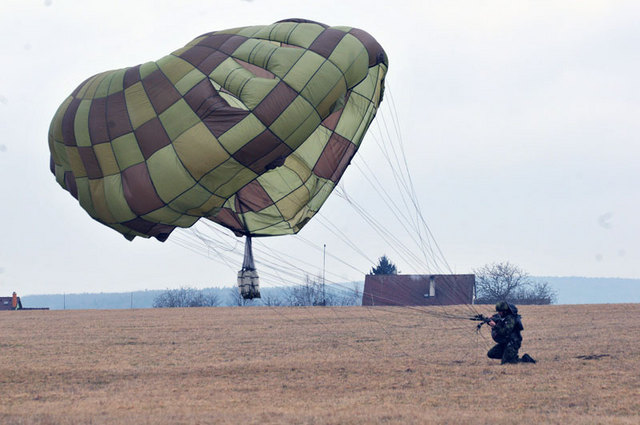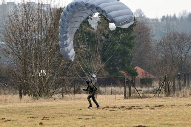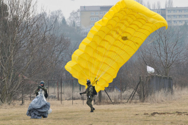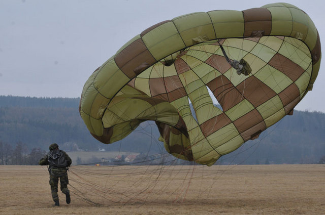 Seskok na klasickém padáku, který čeští armádní výsadkáři používají už řadu let