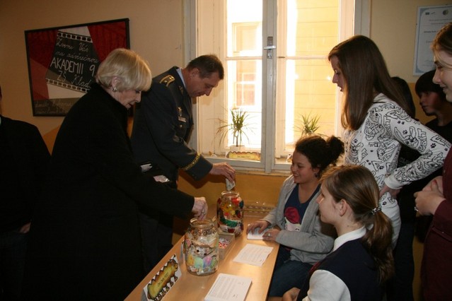 Slavnostní vernisáž zahájila ředitelka ZŠ Kladská Kateřina Vávrová za přítomnosti brigádního generála Jaroslava Kankii, prezidentky stonožkového hnutí Běly Gran Jensen a sestry Dominiky