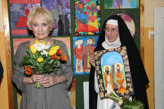Prezidentka stonožkového hnutí paní Běla Gran Jensen společně se sestrou Dominikou, kterou obdarovaly děti jednou z kreseb