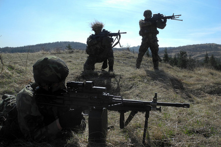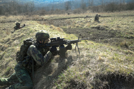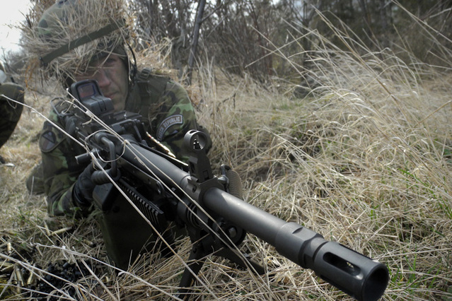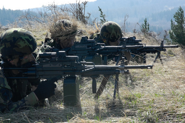 Voják ze 4.brigády rychlého nasazení před zahájením střelby z kulometu minimi