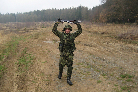 Zasažený svobodník Lukáš Vlach odchází z boje