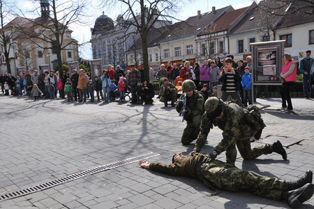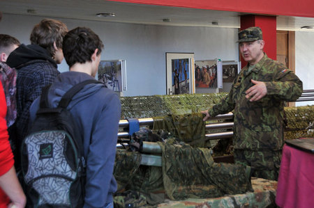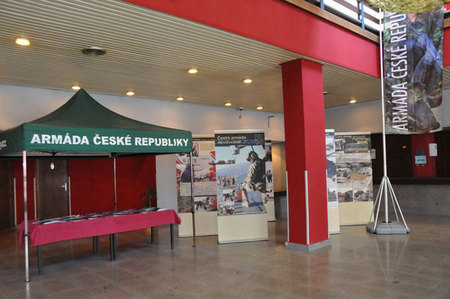 Při vstupu do Kulturního centra Karlov přivítá návštěvníky propagační výstava Armády České republiky se stánkem pro zájemce o studium na vojenských školách