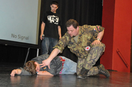 Do praktické ukázky záchrany života zapojil rotný Vyskočil i studenty benešovských škol, kteří zavítali do kulturního centra