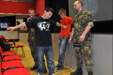Praktická ukázka prohledávání osob se také neobešla bez statistů z řad studentů