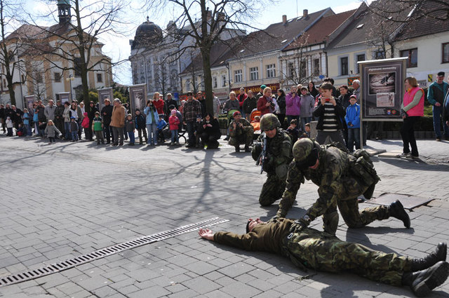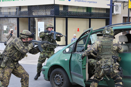 Ukázka zadržení podezřelé osoby se zbraní v podání příslušníků 121. pěší roty aktivní zálohy