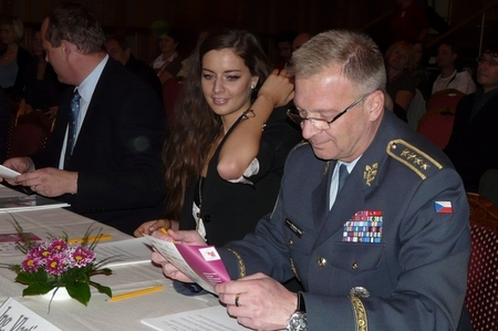 Generál Picek předává cenu vítězkám – voucher na víkendový pobyt ve vojenském rekreačním zařízení Měřín