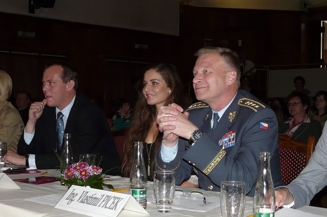 Generál Picek s Českou miss 2012 Terezou Chlebovskou sledují výkony soutěžících dívek