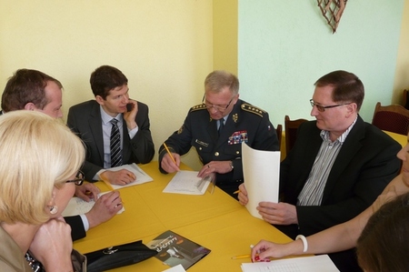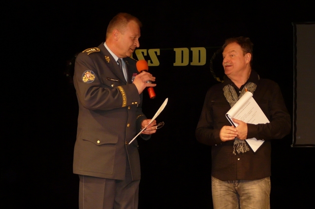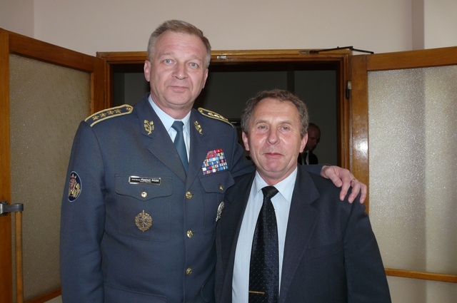 Generál Picek s ředitelem Dětského domova a základní školy ve Volyni a rovněž hlavním organizátorem soutěže Jiřím Pánem