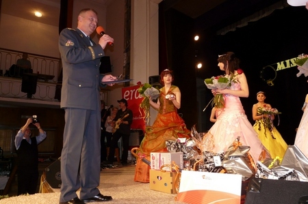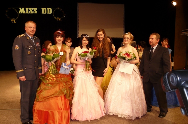 Společná fotografie vítězek s generálem Vlastimilem Pickem, Českou miss 2012 Terezou Chlebovskou a ředitelem Jiřím Pánem
