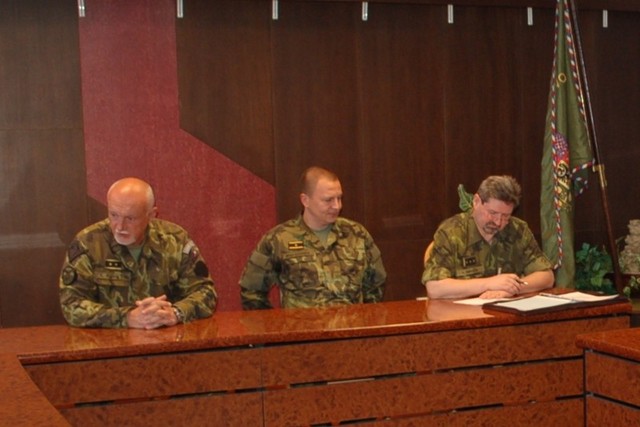 genmjr. Blaško, brig. gen. Kovanda a plk. gšt. Kadlčík při prezentaci o společných silách