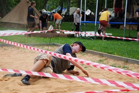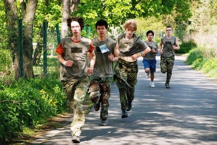 Družstvo Legie T. G. Masaryka běží k další disciplíně, kterou byl hod granátem na cíl