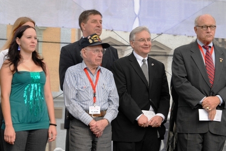 Předání čestného stipendia gen. Pattona. Zleva stojí vítězka Kristýna Otásková, George Thomson - veterán, který v roce 1945 osvobozoval Plzeň, Petr Liška, Doug LaViollete - zakladatel nadace Briana LaVioletta a George Patron Waters - vnuk gen. Pattona