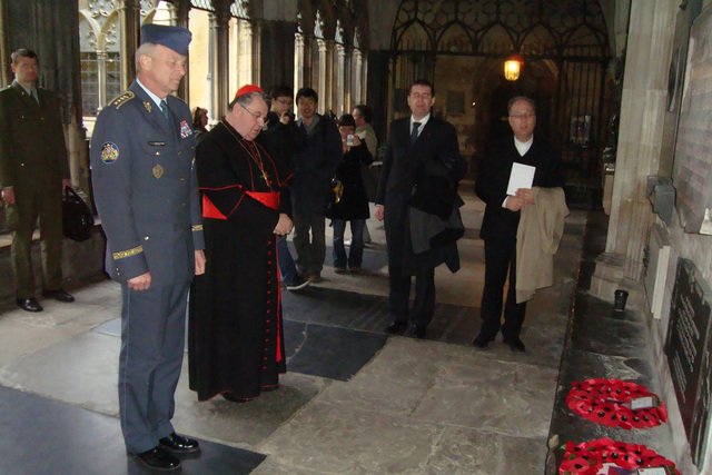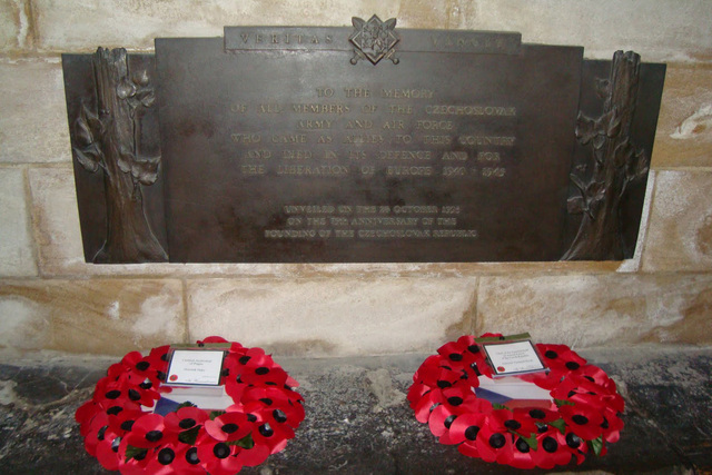 Věnce gen Picka a kardinála Duky u památníků čs vojáků a letců ve Westmister Abbey