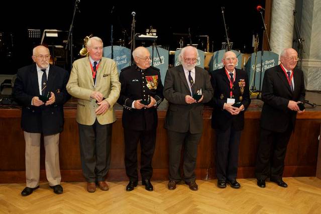 Veteráni belgického 17. střeleckého praporu, kteří osvobozovali v roce 1945 Plzeňsko. Zleva Hubert Rauw, Paul Jacobs, Arthur Otto, José Schindfessel, Luis Gihoul a Michel Gilain.