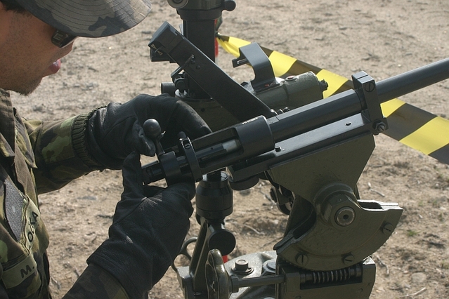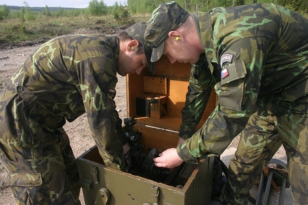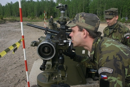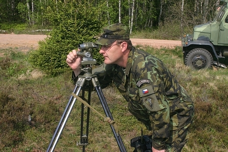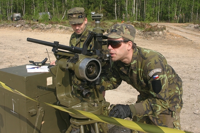 Velitel čety zaměřuje CP-34 (děla) do hlavního směru