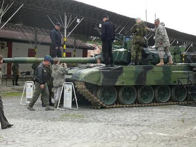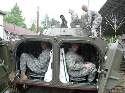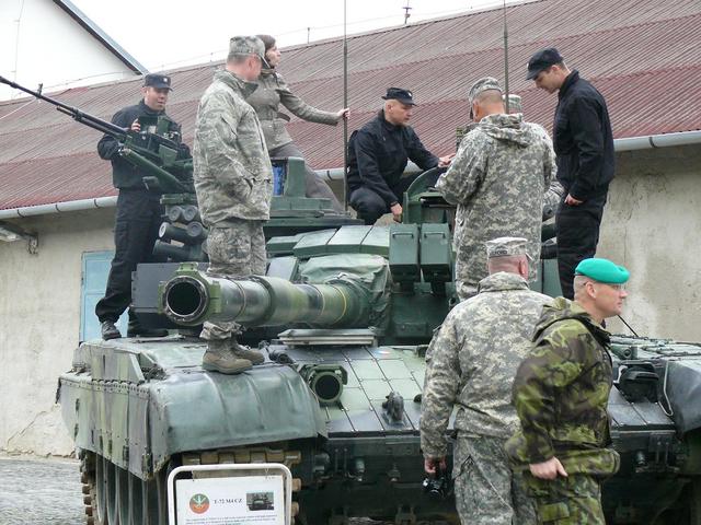 Osádka vozidla poskytuje americkým generálům odpovědi na dotazy ohledně zkušeností s T-72M4CZ