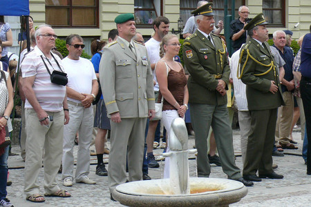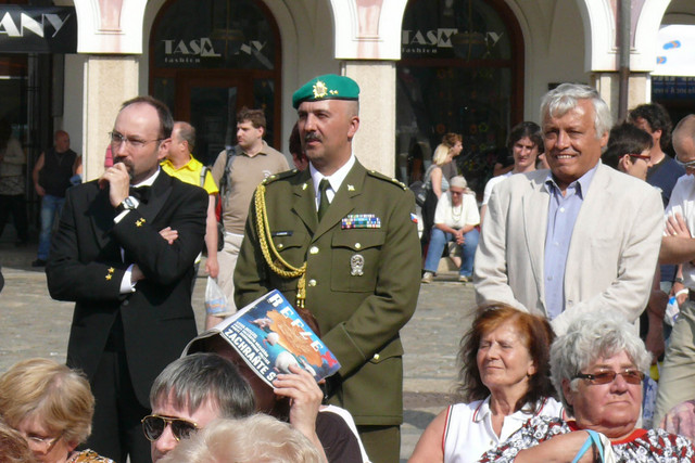 Zleva: první zástupce náčelníka Generálního štábu AČR generálmajor Miroslav Žižka, velitel Posádky Praha plukovník Pavel Kantor a ředitel Krajského velitelství Karlovy Vary plukovník Jan Kroupa