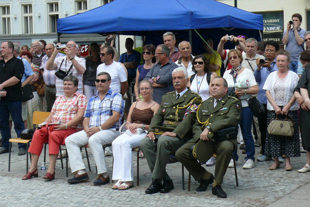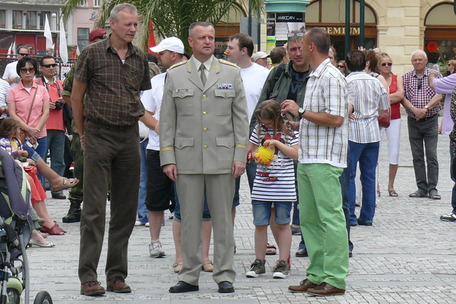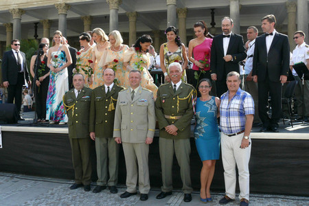 Zleva: ředitel KVV Karlovy Vary plukovník Jan Kroupa, inspektor Vojenských hudeb major Karel Myšák, první zástupce náčelníka Generálního štábu AČR generálmajor Miroslav Žižka, velitel Posádky Praha plukovník Pavel Kantor, komunikační manažerka náčelníka Generálního štábu AČR Mira Třebická a Richard Rataj z ÚH AČR