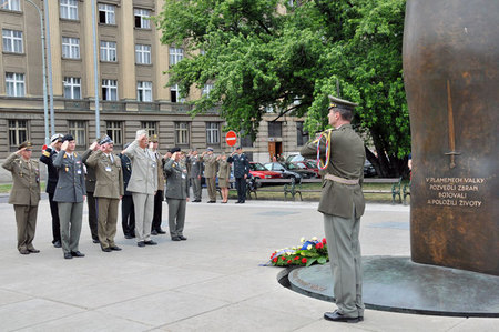 Velitelé položili k Památníku zahraničním vojákům na Vítězném náměstí smuteční věnec a uctili tak památku těch, kteří položili své životy v době 2. světové války