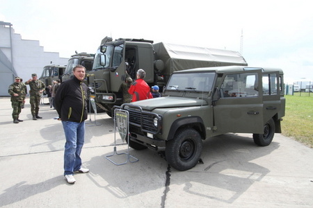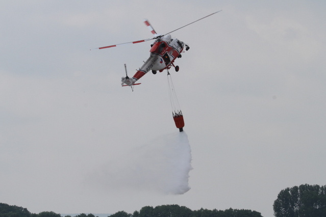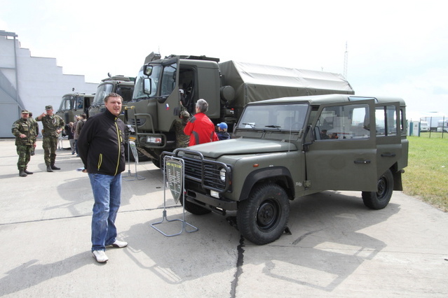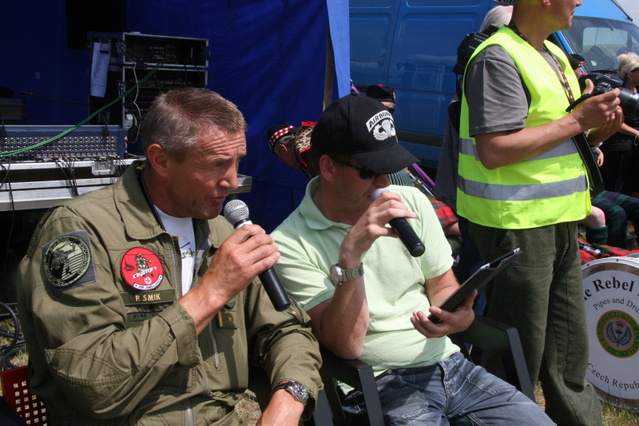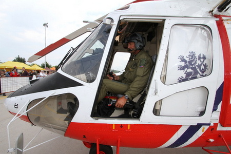 Ukázku pilotáže svého kolegy pplk. P. Kratochvíla s vrtulníkem W-3A Sokol komentoval pro diváky pilot major Peter Smik.