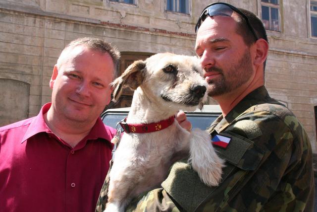 Zleva: Radek Komoráš, moderátor celého dopoledního programu, s Alicí a četařem Jurajem Králikem