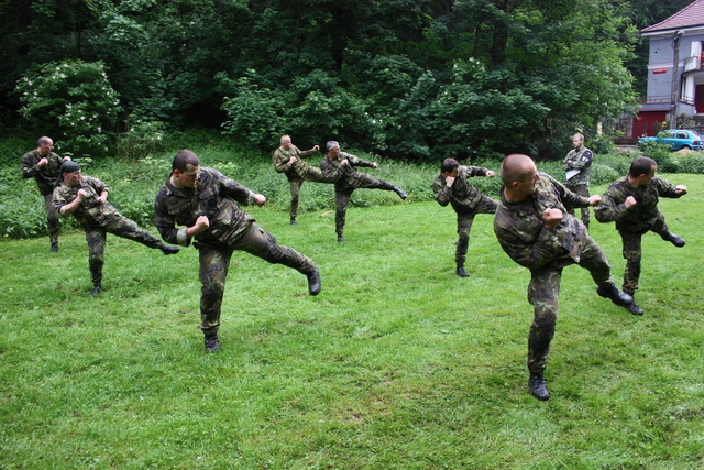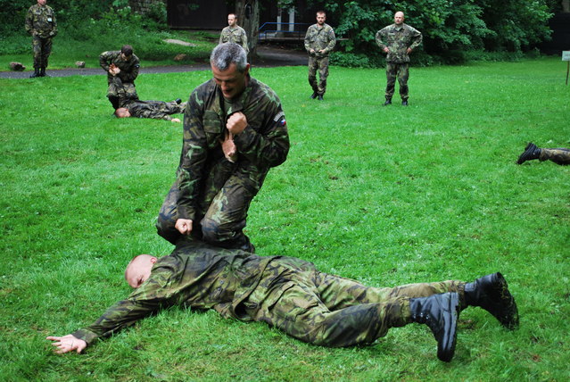 Během zkoušek vojáci museli zvládnout techniky sebeobrany, např. obranu proti tyči