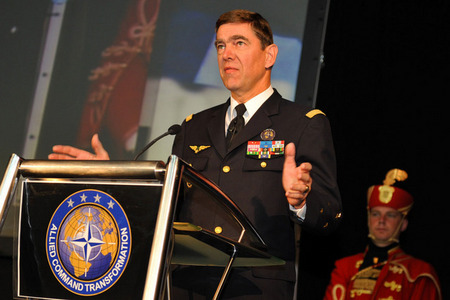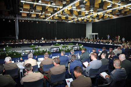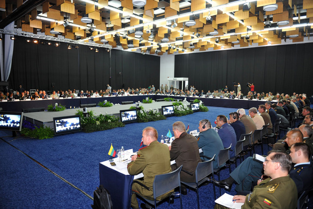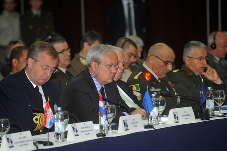 Gen Håkan SYRÉN předseda EUMC-Charles KUZELL NATO-Michael RÜHE NATO-Gen Sher Mohammad KARIMI Afghánský NGŠ-brig.gen. Sander LlESHI Albánský ZNGŠ