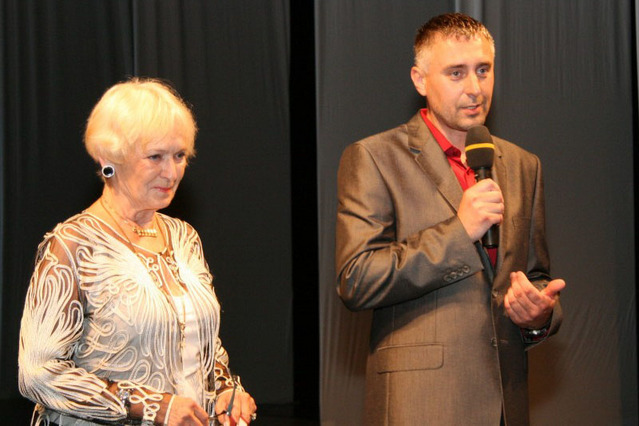 Prezidentka stonožkového hnutí Běla Gran Jensen společně se zakladatelem Ceny Ď a současně moderátorem slavnostního ceremoniálu Richardem Langerem