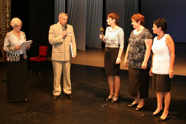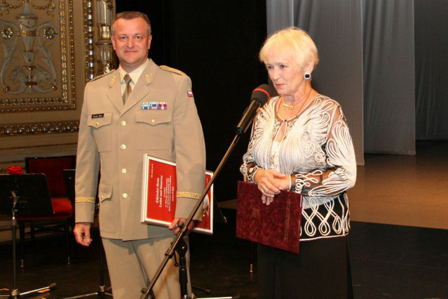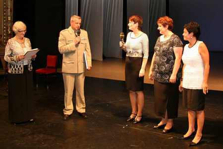 Cenu ředitelce školy Petře Vágnerové (uprostřed), společně s Bělou Gran Jensen, předal první zástupce náčelníka Generálního štábu AČR generálmajor Miroslav Žižka