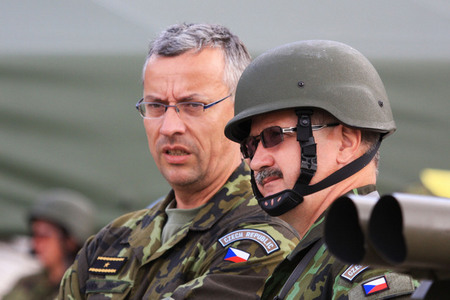 Brigádní generál František Mičánek a plukovník gšt. Vladimír Barca sledují ostré střelby