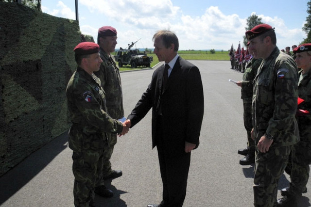 Armádní generál Jiří Šedivý blahopřeje vyznamenaným vojákům