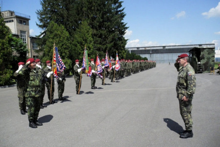 Plukovník Miroslav Hlaváč při přebírání hlášení