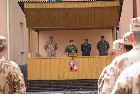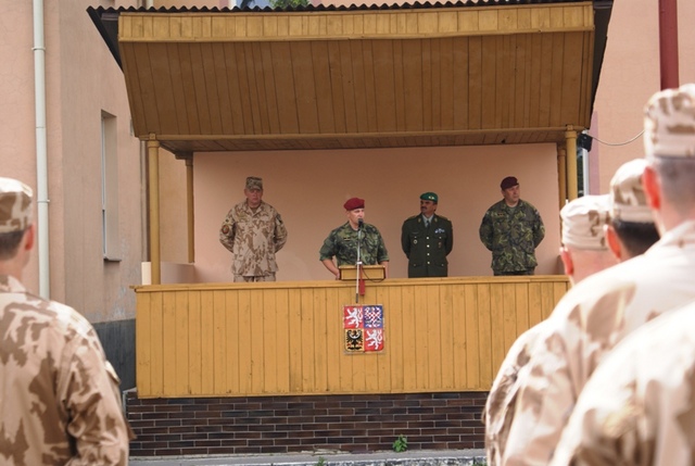 Zástupce velitele společných sil brigádní generál Milan Kovanda hovoří k vojákům 10. jednotky PRT Logar
