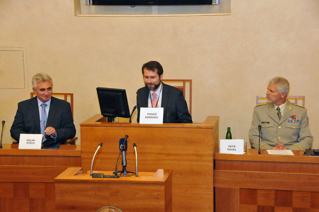 Hlavní aktéři expertního jednání - zleva: předseda Senátu Milan Štěch, moderátor Tomáš Karásek a náčelník GŠ AČR generálporučík Petr Pavel