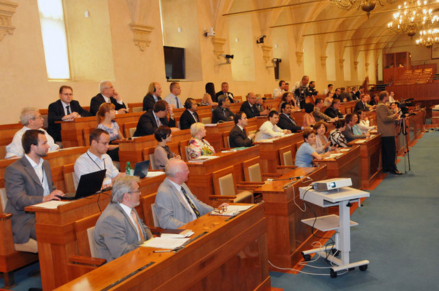 Před zahájením jednání expertního kulatého stolu v jednacím sále Senátu Parlamentu ČR