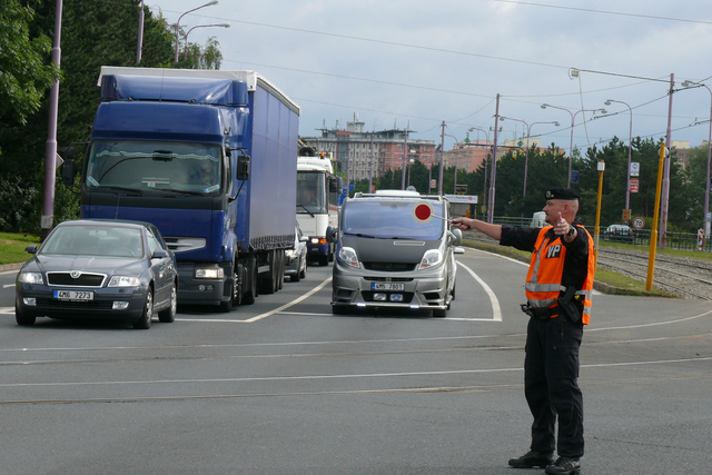 Regulaci křižovatek a doprovod proudu zabezpečovali příslušníci Vojenské policie