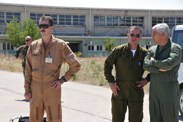 Zleva: velitel chorvatské základny plukovník Karol Lučan, plukovník Patrick Sullivan z velvyslanectví USA v Praze a generál Bohuslav Dvořák, zástupce náčelníka GŠ AČR v rozhovoru